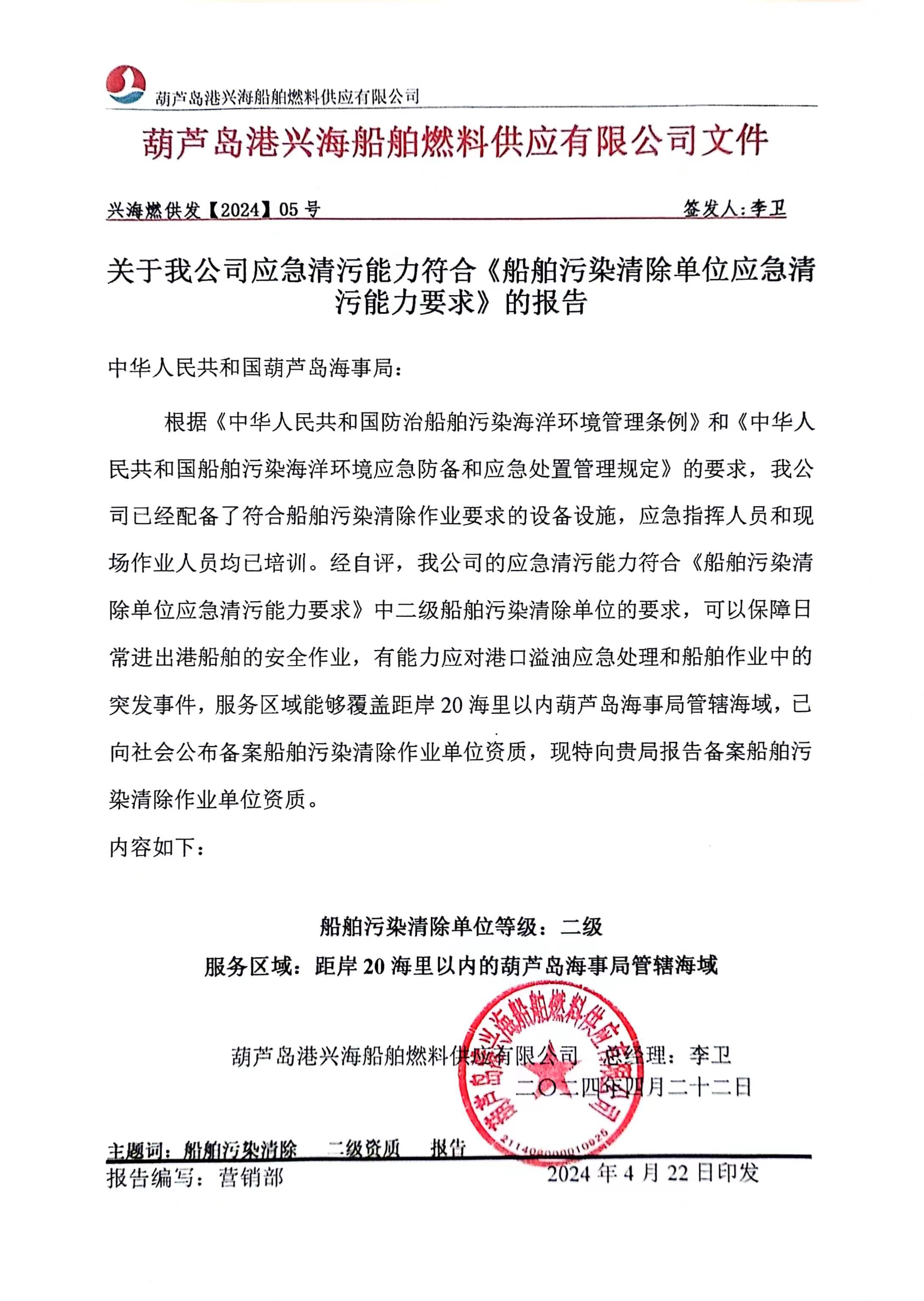 葫蘆島港興海船舶燃料供應(yīng)有限公司